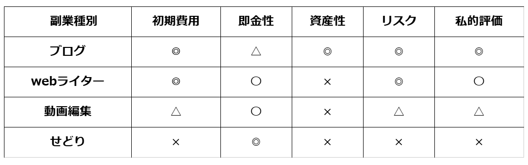 2. なぜ「ブログ」が◎だったのか? 各副業の分析結果